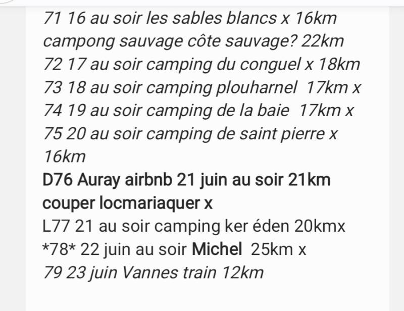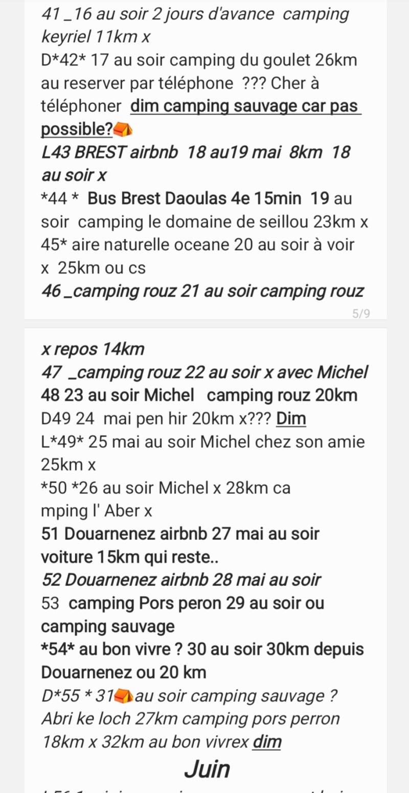 80 jours. Ce que je redoute c'est la récupération et les tempêtes, car je compte dormir beaucoup sous la tente: en camping ou hors camping, en camping sauvage ce qui peut poser des problèmes...